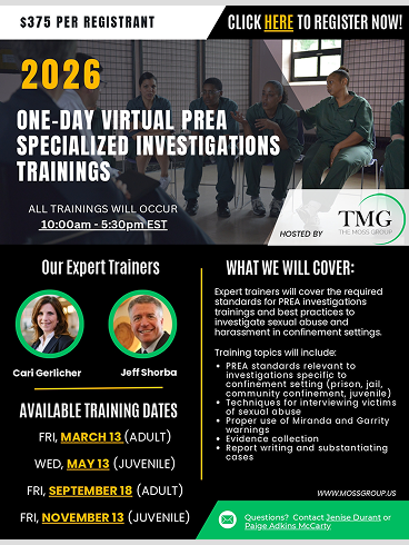 This comprehensive one-day virtual program is designed to meet the PREA specialized investigations training requirements and build essential skills through scenario-based learning.